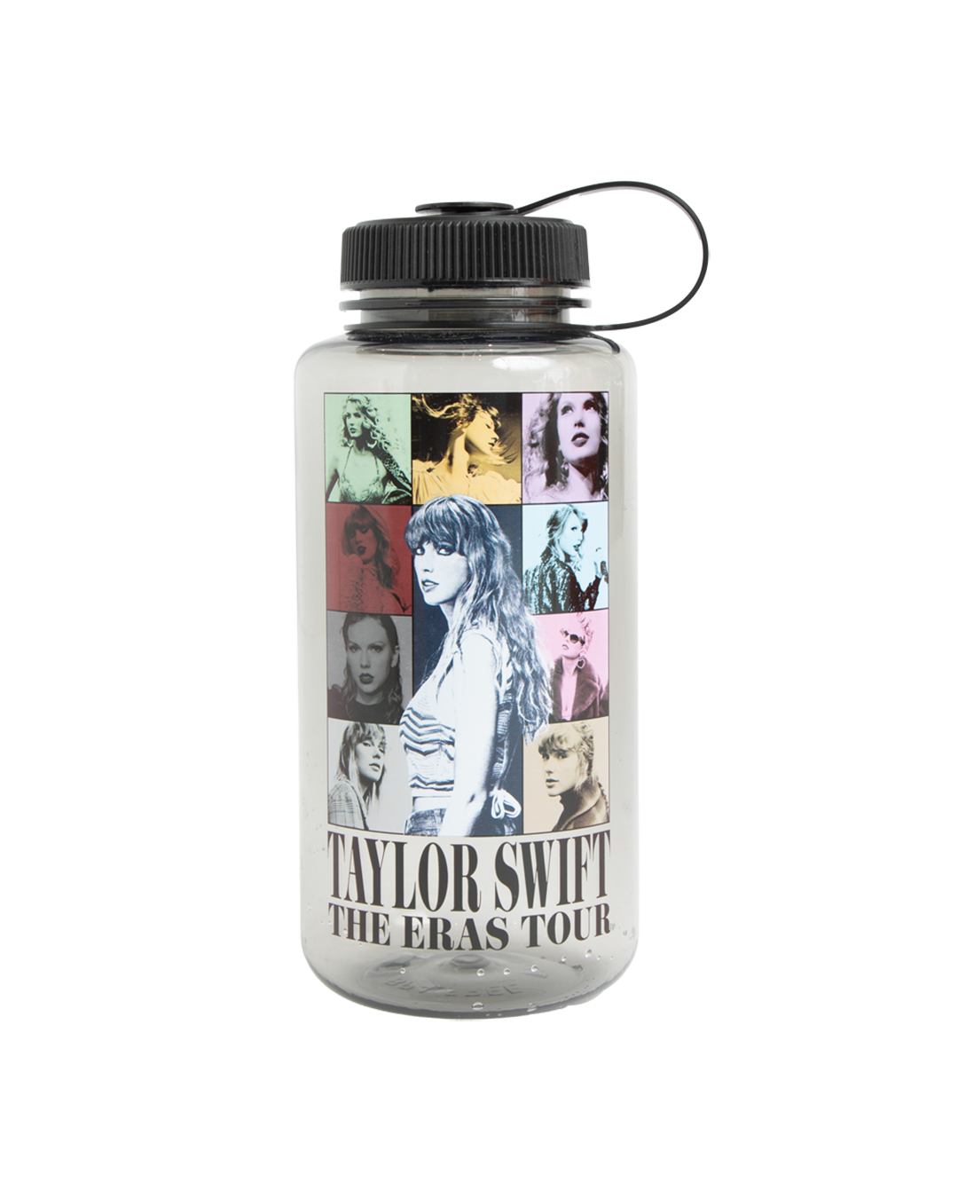 Water bottle featuring photos of Taylor Swift and Taylor Swift The Eras Tour printed on front.